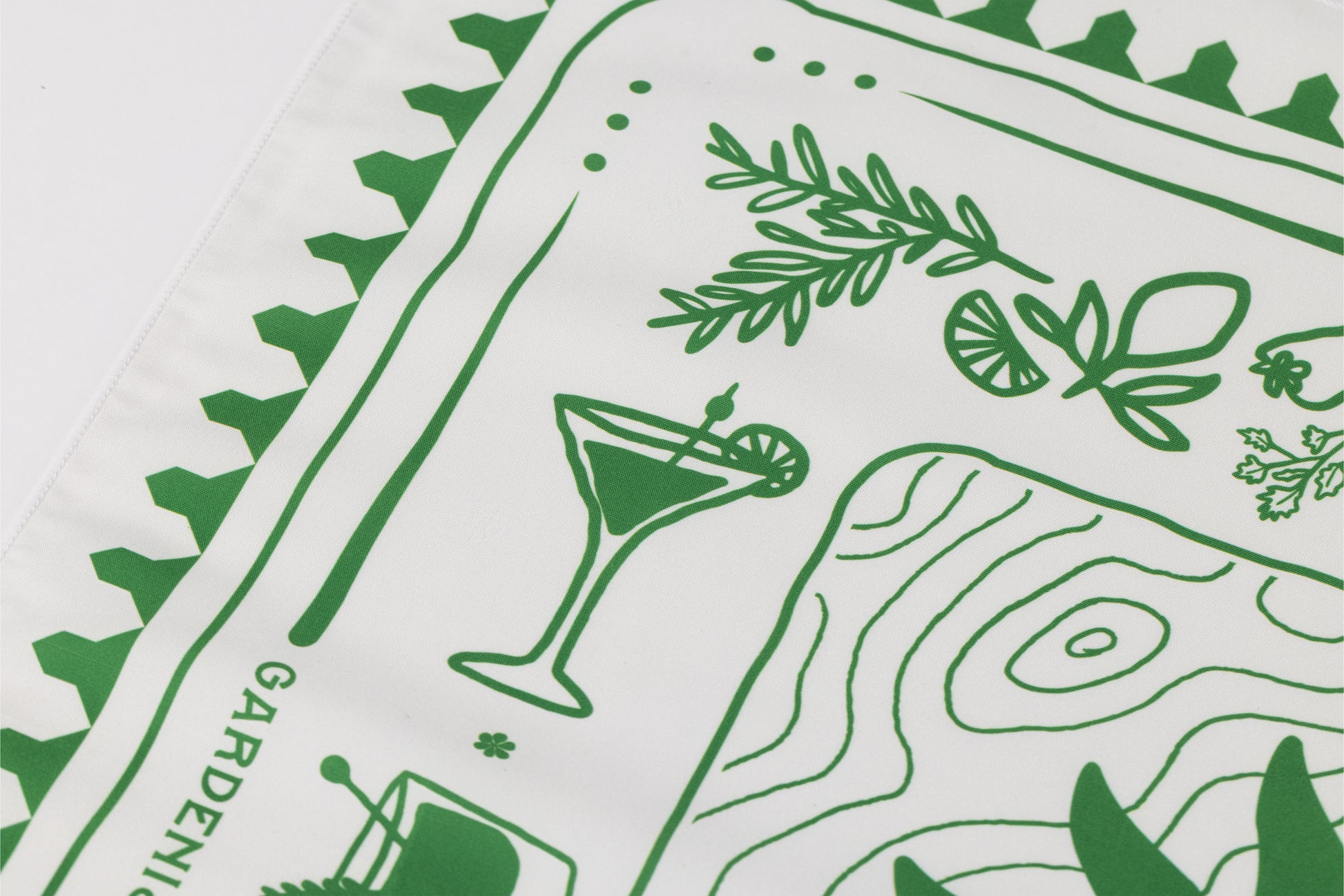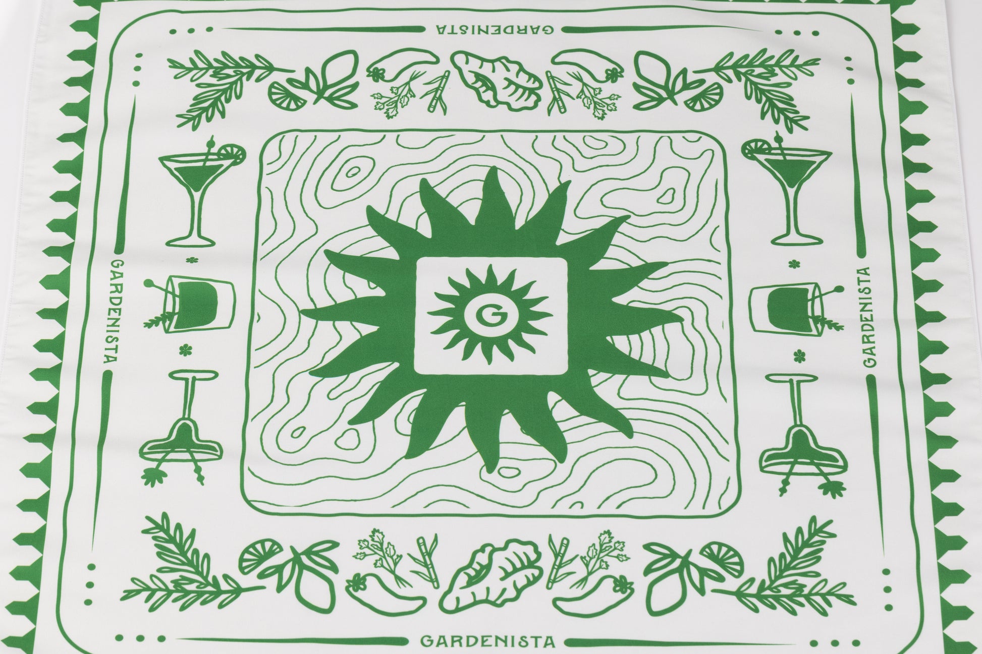 Featuring our signature and fresh design, the Gardenista bandana is the most versatile accessory you didn't know you were missing. Whether it's around your neck, in your hair, or wrapped around a Gardenista bottle, our bandana brings a kick of style wherever it goes. Lightweight, soft, and printed with Gardenista's one-of-a-kind designs, this bandana pairs great with cocktails, a long dinner, and of course, a good time.