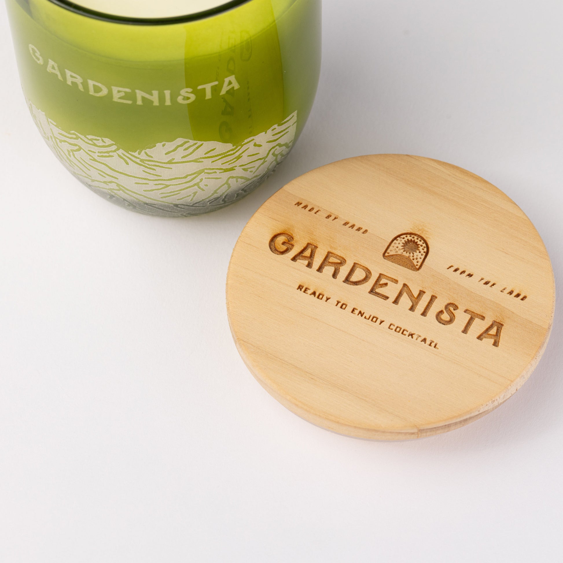 Custom fragrance capturing the freshness of the Colorado mountains. Etched glass with the Aspen range and Gardenista wordmark. Topped with a wooden lid engraved with our logo.