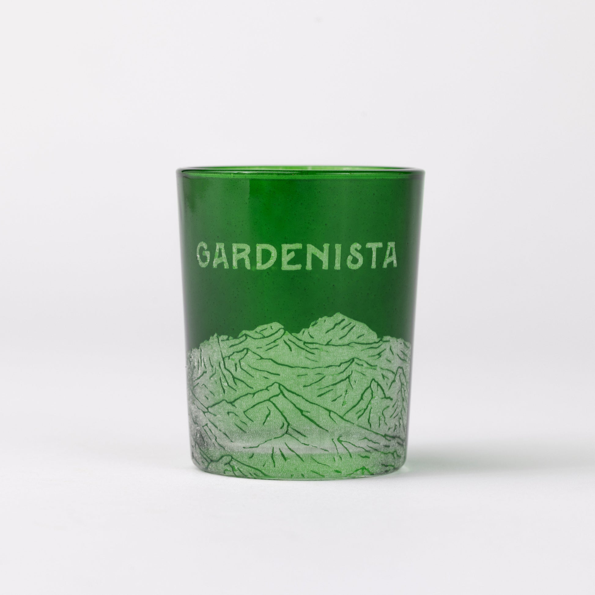 This glass votive features the Gardenista wordmark and Aspen mountain range, etched with a soft white frost effect. At 2.5" tall, it’s the perfect size to light up a dinner table, windowsill, or cocktail corner with just the right flicker of vibe.